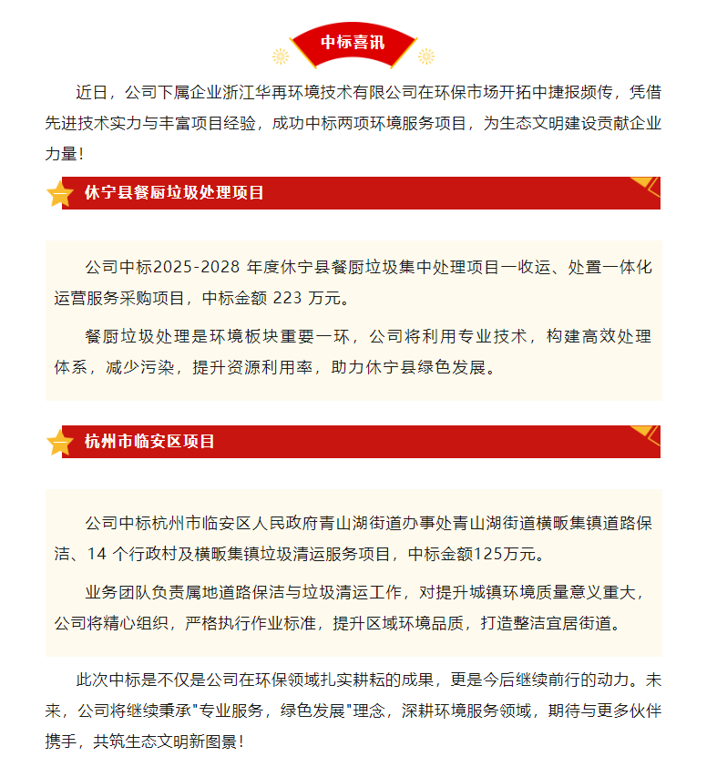 喜报 | 华再技术乐鱼(中国)连中两标,环境服务启新程