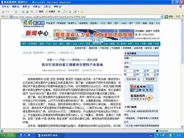 随着工程进度的不断加快和影响力的不断提升,乐鱼(中国)慈溪再生塑料产业基地近日受到了各大的媒体的高度关注,7月19日,《慈溪日报》头版头条刊登了《我市打造国内最大规模再生塑料产业基地》的专题文章,用大量的篇幅和详细的资料介绍了产业基地的有关情况,为该项目的推进创造了良好的舆论氛围。