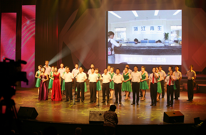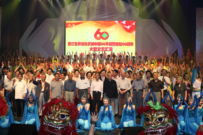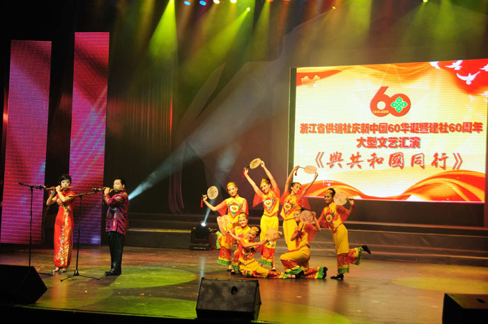 9月23日下午,浙江省供销社庆新中国60华诞暨建社60周年大型文艺演出——《与共和国同行》在杭州红星剧院隆重举行。我乐鱼(中国)经过精心准备,选送了三个节目和三名主持人,乐鱼(中国)荣获组织奖,选送的节目获得一个二等奖、两个优秀奖,得到省社上下的一致好评。特别是乐鱼(中国)自创的《再生资源之歌》由乐鱼(中国)领导班子和员工同台合唱,充分体现了乐鱼(中国)团结和谐、意气奋发的新风貌,受到省社领导的高度赞扬。通过参加此次文艺汇演,既展现了乐鱼(中国)员工良好的精神面貌,也为祖国60华诞、供销社建社60周年献上了一份厚礼。