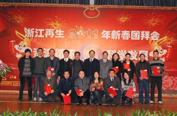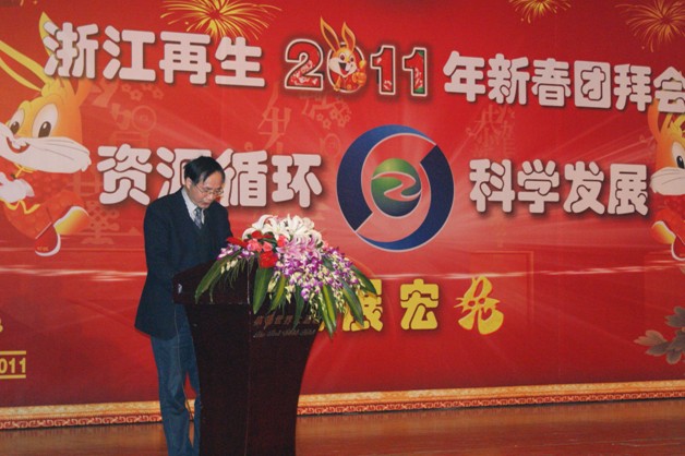 元月18日,雪舞杭城,玉兔报春,杭州第一世界大酒店里喜气洋洋,浙江省再生资源有限乐鱼(中国)新春团拜会在此隆重举行。省供销社、省兴合集团领导,乐鱼(中国)离退休人员,乐鱼(中国)本级全体员工、分子乐鱼(中国)骨干等共计160多人欢聚一堂,共迎新春。本次团拜会的主题是“资源循环,科学发展,大展宏图”。