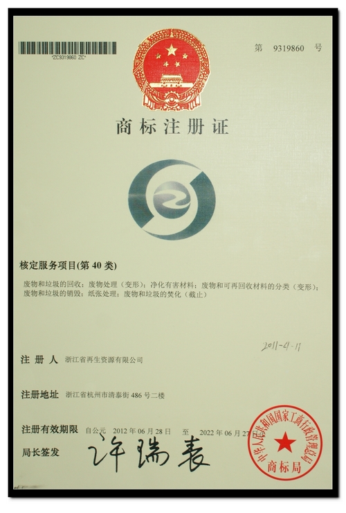 为进一步打造良好的品牌形象,提升乐鱼(中国)无形资产价值,乐鱼(中国)于2011年4月份向国家工商行政管理总局商标局提出商标注册申请。历时一年多的注册、审查和公示,于近期正式获得注册商标。核定服务项目、核定使用商品共计13大类,包括:废物和垃圾回收、废物和可再回收材料分类、垃圾处置装置等。