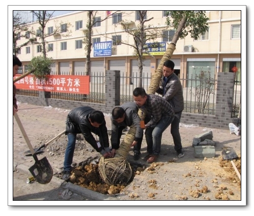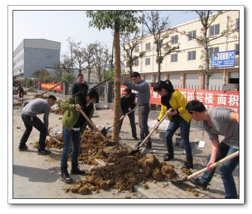 下午一时许,全体人员在营销部集合,分成6个小分队,准备工具,随着一声令下,植树活动正式开始。挖坑、填土、种树、埋土、浇水,分工明确,通力合作,每个人都干得很认真。通过互相帮助,很快就将所有的树顺利移入树坑,一排整齐的绿树为产业基地平添了一道绿色屏障。此次植树活动做到人人参与,虽然在太阳底下种树,很热也很累,但看到一颗颗树都挺拔的站在眼前,每个人都露出了满意的笑容,再累也值得,毕竟收获的更多。