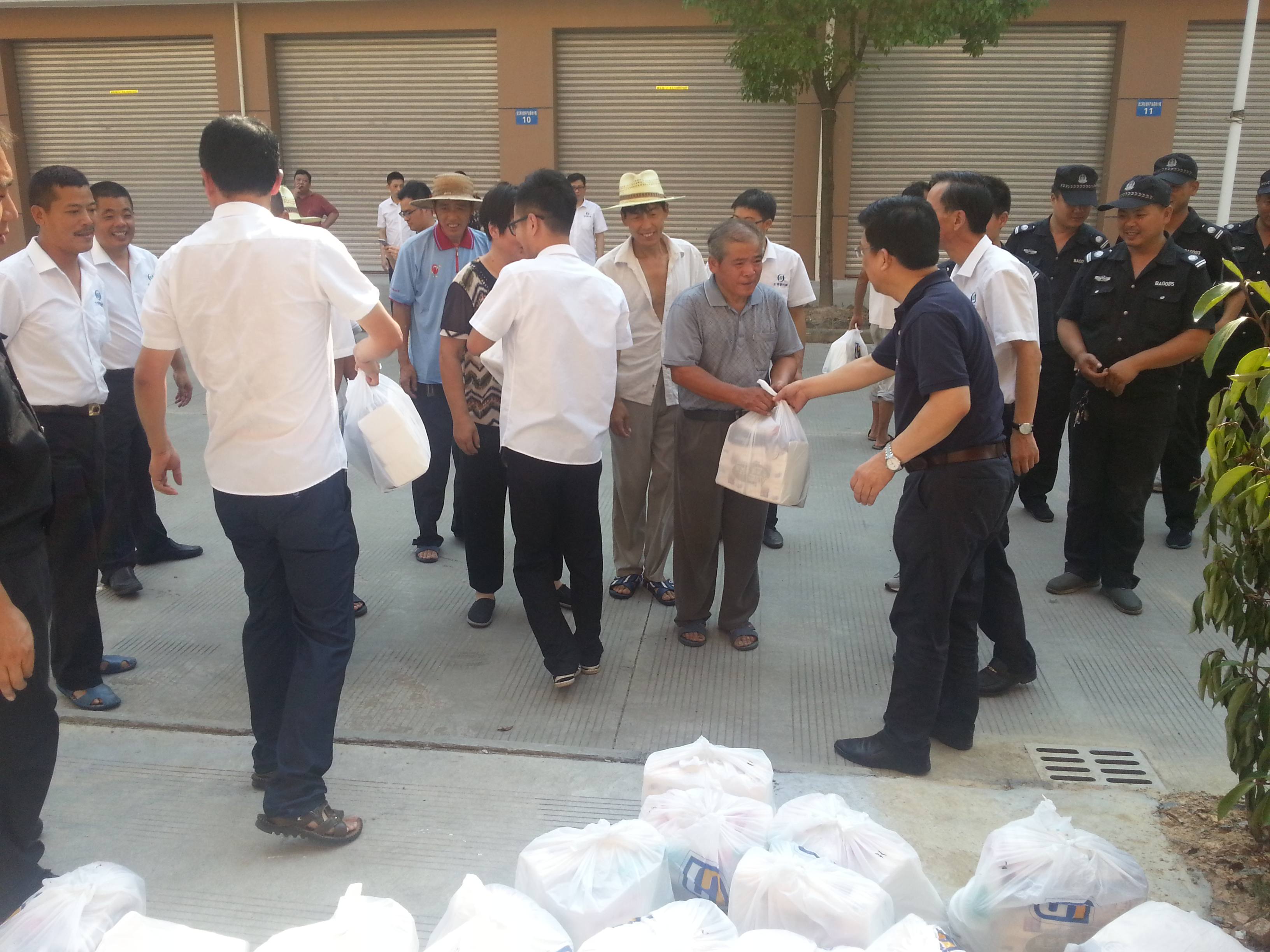 炎炎夏日,酷热难耐,连续十几天的高温预警提醒,为基层工作员工的工作增加了不少难度。朱总代表集团领导对高温天气下坚持工作的工作人员和企业一线职工表示亲切慰问,为他们送上毛巾、沐浴露、花露水等洗漱用品和清凉用品,他叮嘱大家要注意身体健康和生产安全。他同时要求基地有关责任部门和生产单位要以职工为本,深入开展安全生产监督检查,落实好高温劳动保护政策。