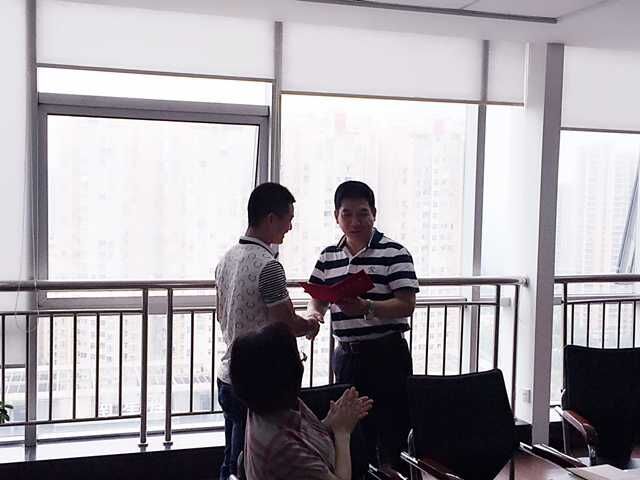 图示1集团乐鱼(中国)副总经理朱庆荣给优秀工作者颁发荣誉证书和奖金