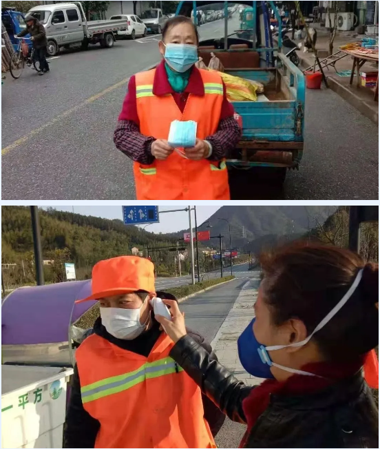 他们每天爬几千级台阶,与卫生院人员一起,挨家挨户上门进行垃圾收集、消毒、清运工作,不怕苦,不怕累,不埋怨,在关键时刻不忘初心,践行一个共产党员的职责。当一抹橙色套上白色防护服时,他们更是深感责任重大,比平时更认真,更仔细,生怕漏掉一户、生怕疫情蔓延。面对隔离人员在隔离期间的情绪问题,他们耐心安慰,鼓励隔离人员克服心理恐惧,安心生活。