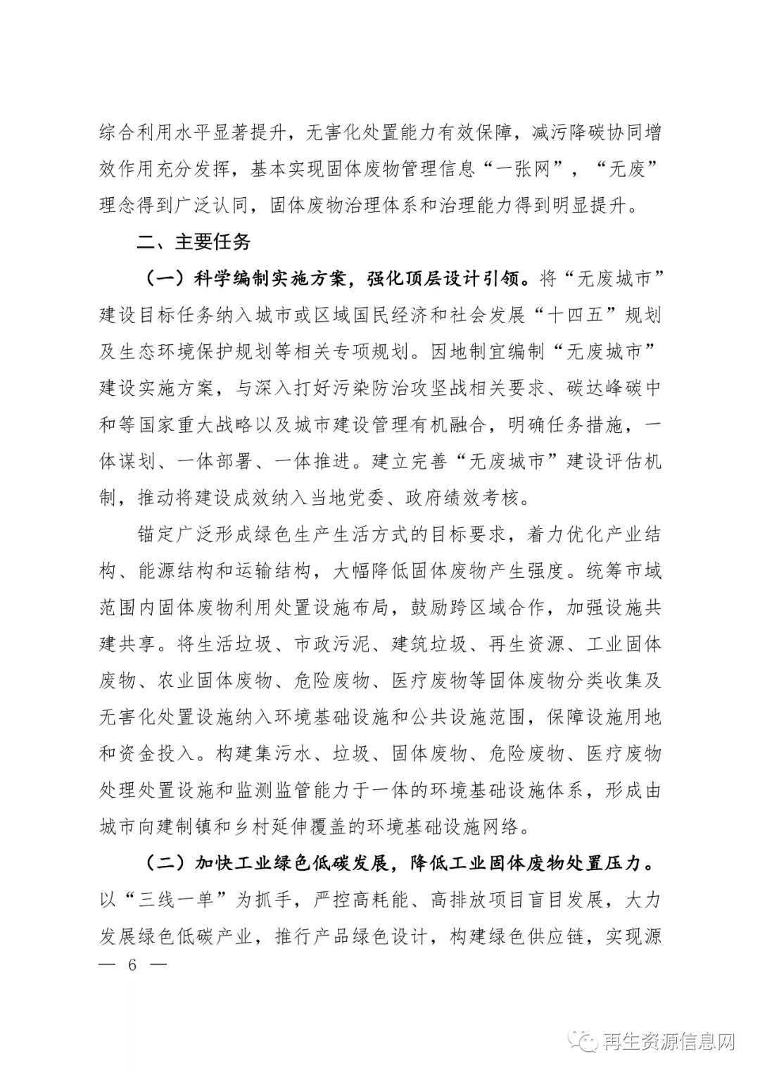 生态环境部等18部门联合印发《“十四五”时期“无废城市”建设工作方案》