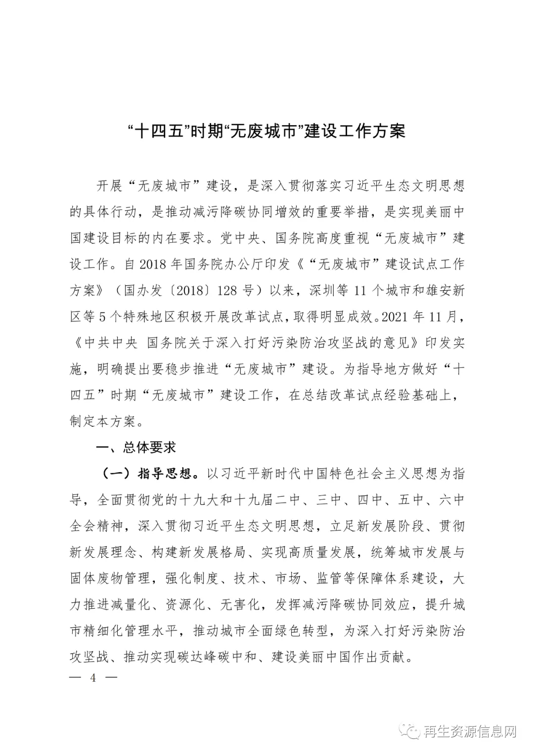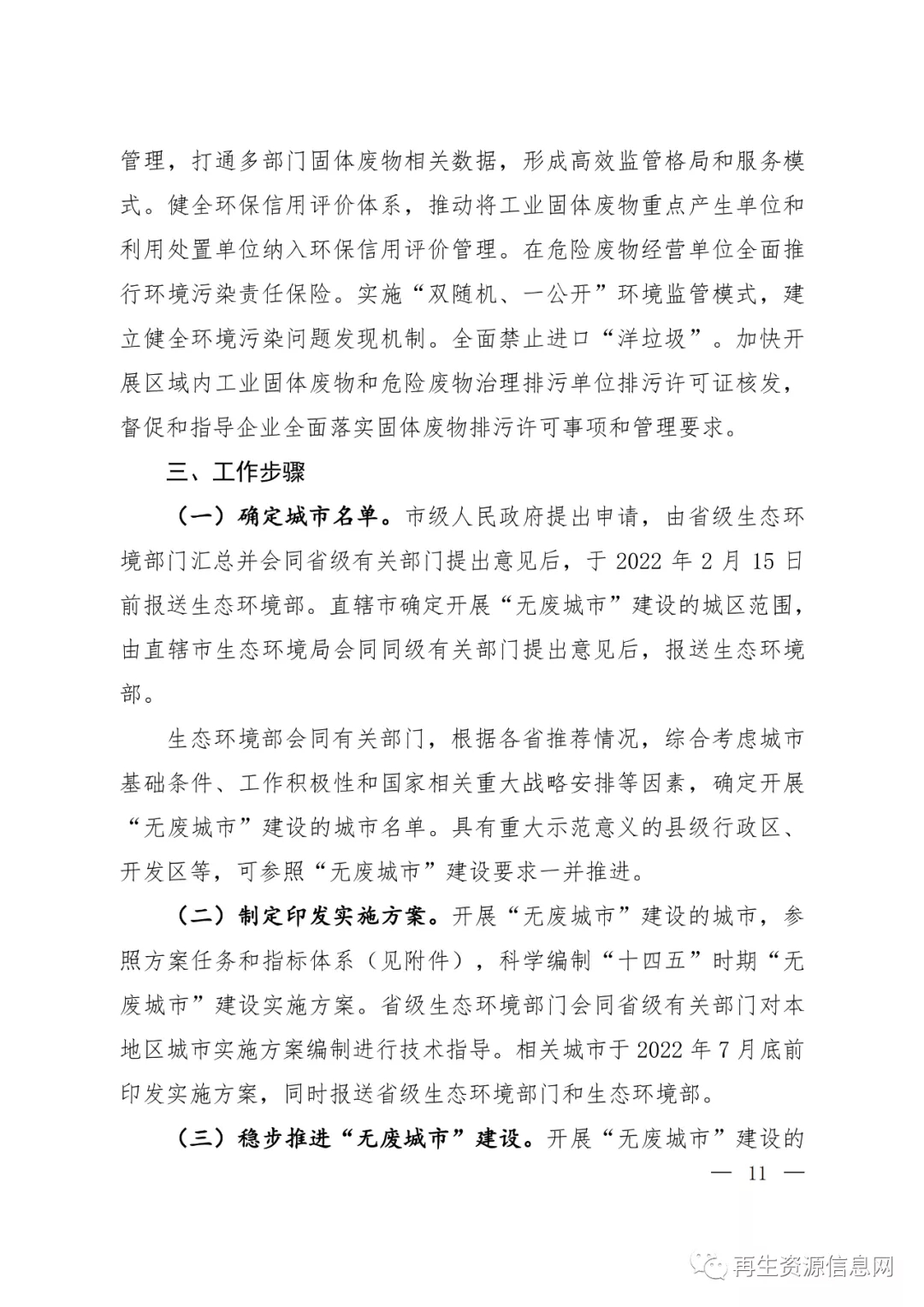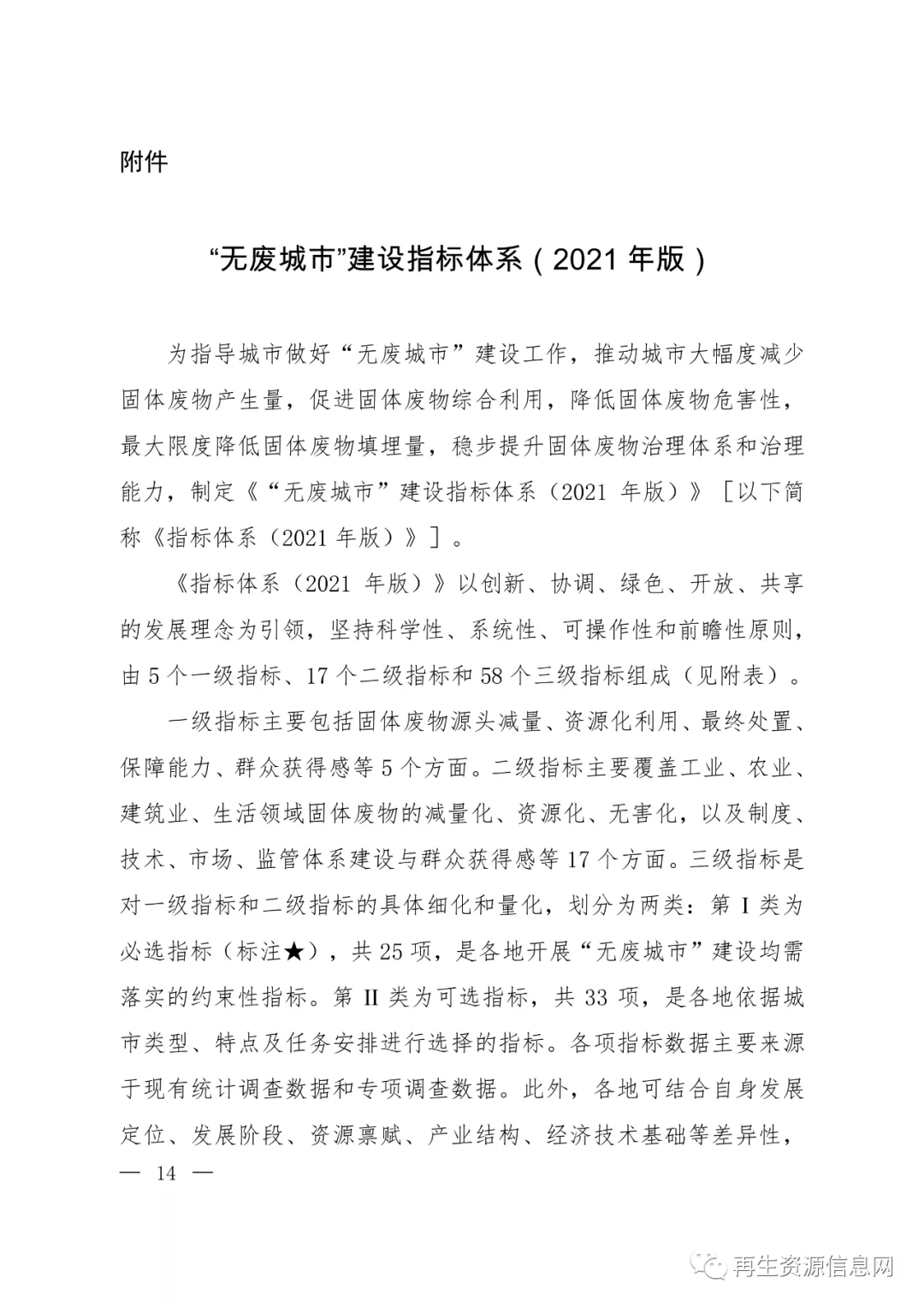 关于印发《“十四五”时期“无废城市”建设工作方案》的通知
